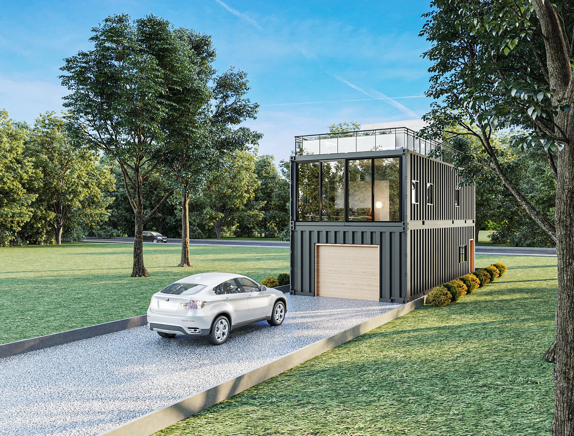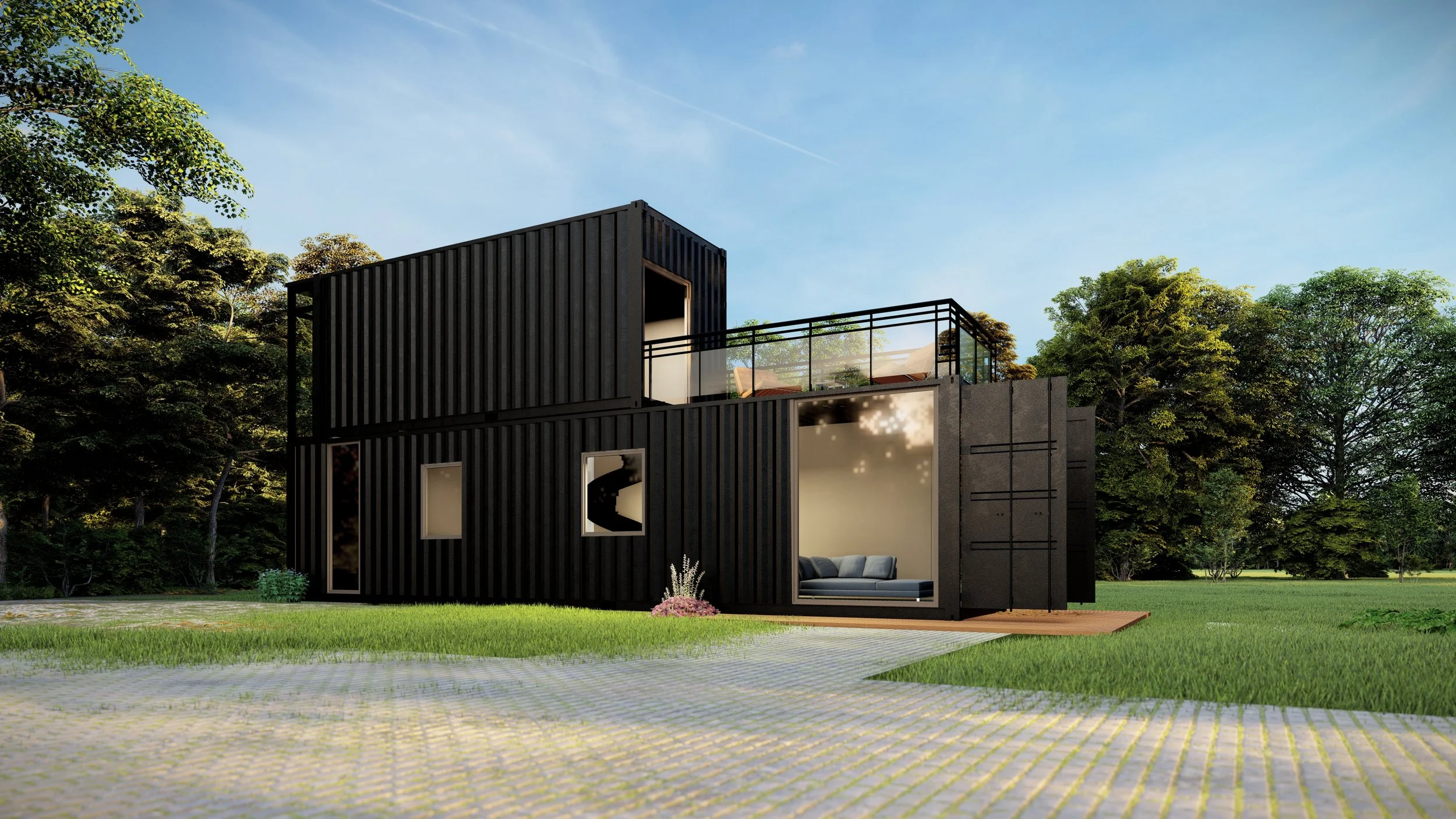Currently our largest model utilizing 1,280 sq-ft and three levels of living space. Single car garage with standard electric vehicle charging options. 1 and 2 bedroom option floor plans available with additional sleeping loft or storage space. 1 or 1-1/2 bath floorplans available. Optional office space or garage workshop with room for solar battery storage. 640 sq-ft rooftop deck with outdoor wet bar and grill station. High 9ft ceilings and space saving design integration. Finished with luxury level details you would find in homes several times the price. Multiple floor plans and expansions available. Builder financing available.